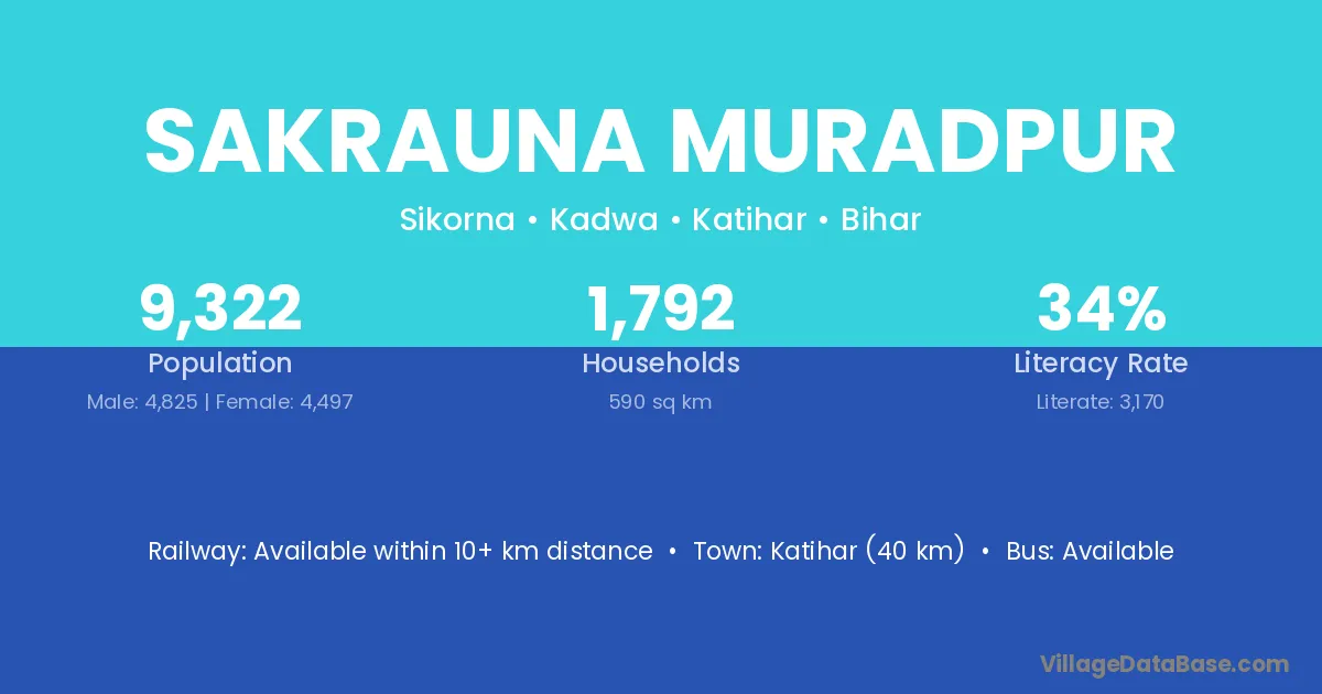 Katihar (40 km) is the nearest town to Sakrauna Muradpur village for major economic activities and is located approximately 40 km away.