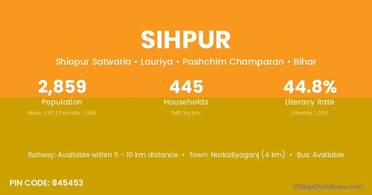 Katihar (45 km) is the nearest town to Sihpur village for major economic activities and is located approximately 45 km away.