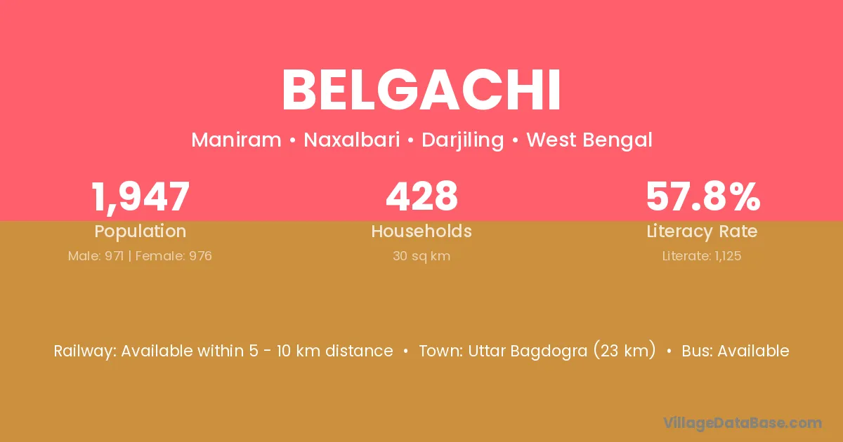 Katihar (20 km) is the nearest town to Belgachi village for major economic activities and is located approximately 20 km away.