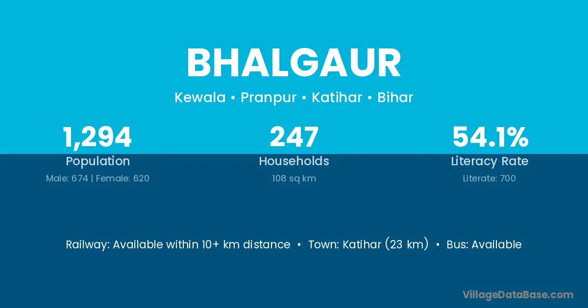 Katihar (23 km) is the nearest town to Bhalgaur village for major economic activities and is located approximately 23 km away.
