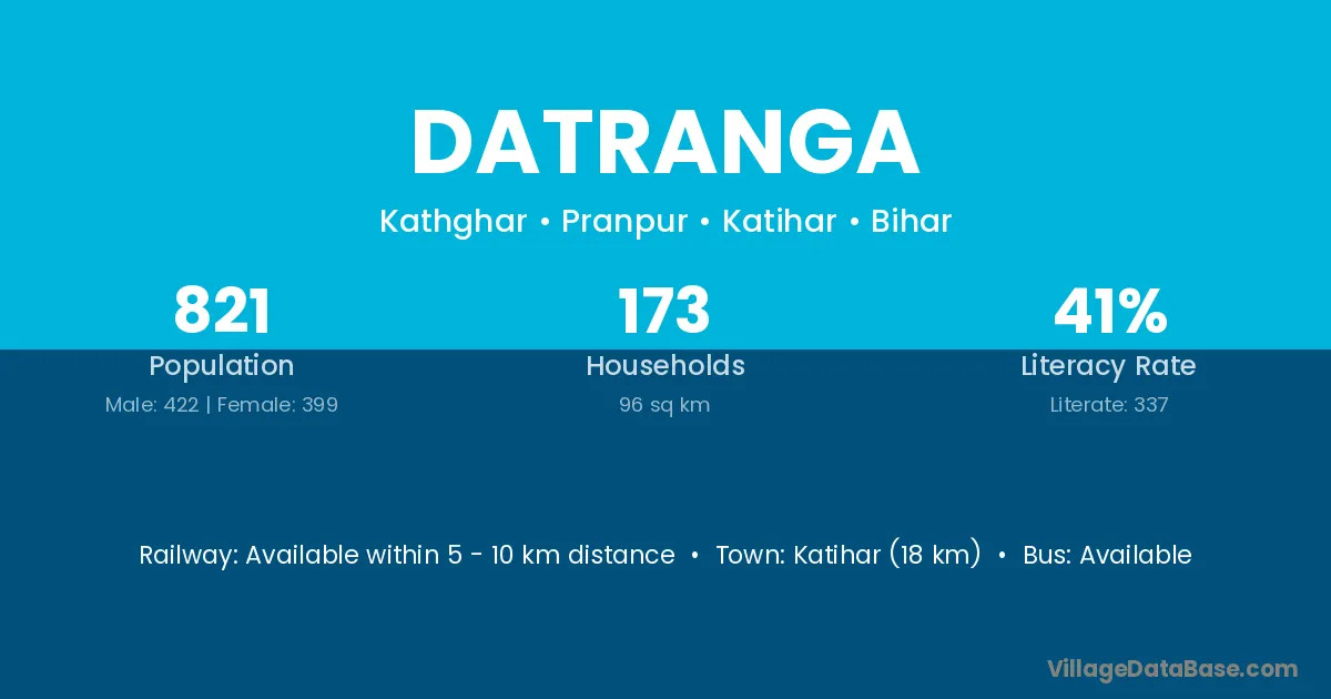 Katihar (18 km) is the nearest town to Datranga village for major economic activities and is located approximately 18 km away.