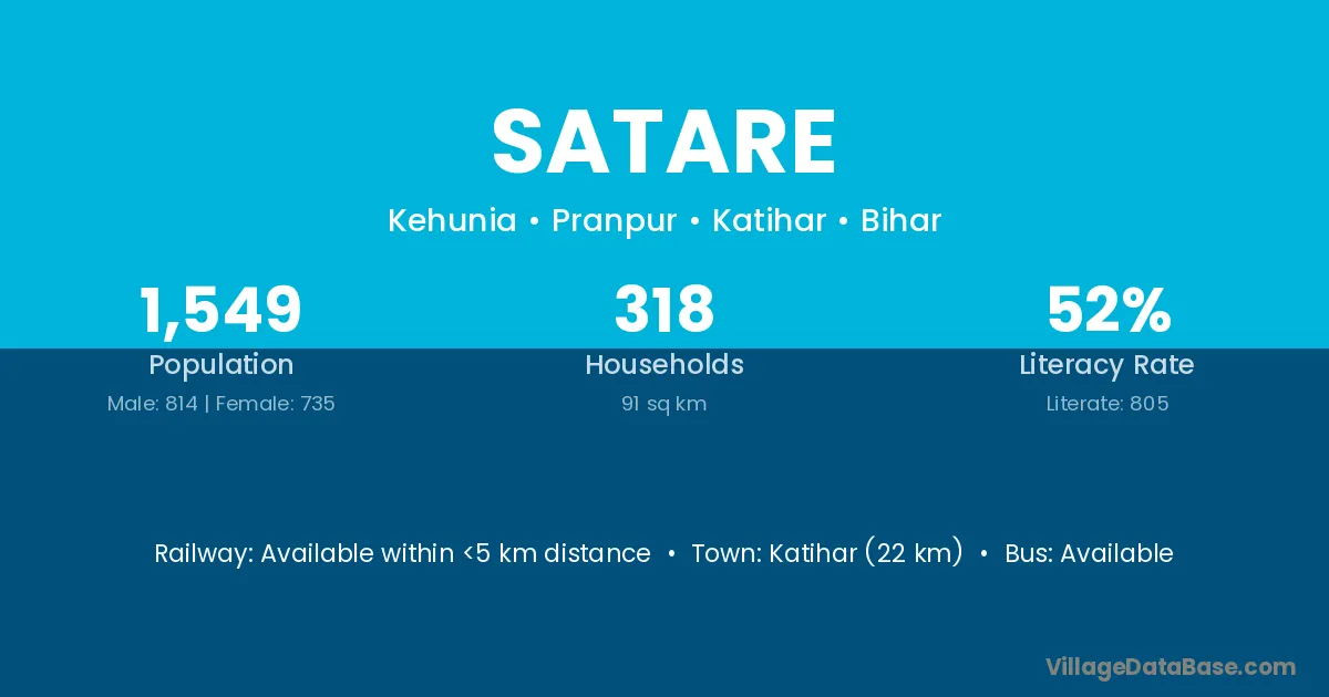 Katihar (22 km) is the nearest town to Satare village for major economic activities and is located approximately 22 km away.
