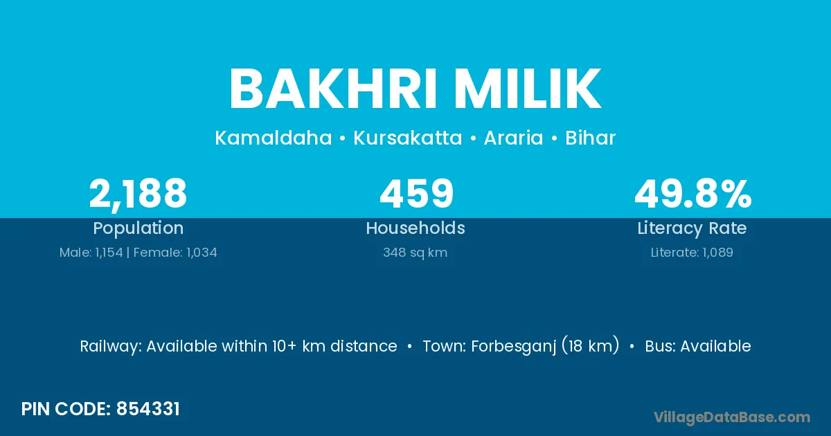 The population of Bakhri Milik village is distributed between literate and illiterate residents as follows: