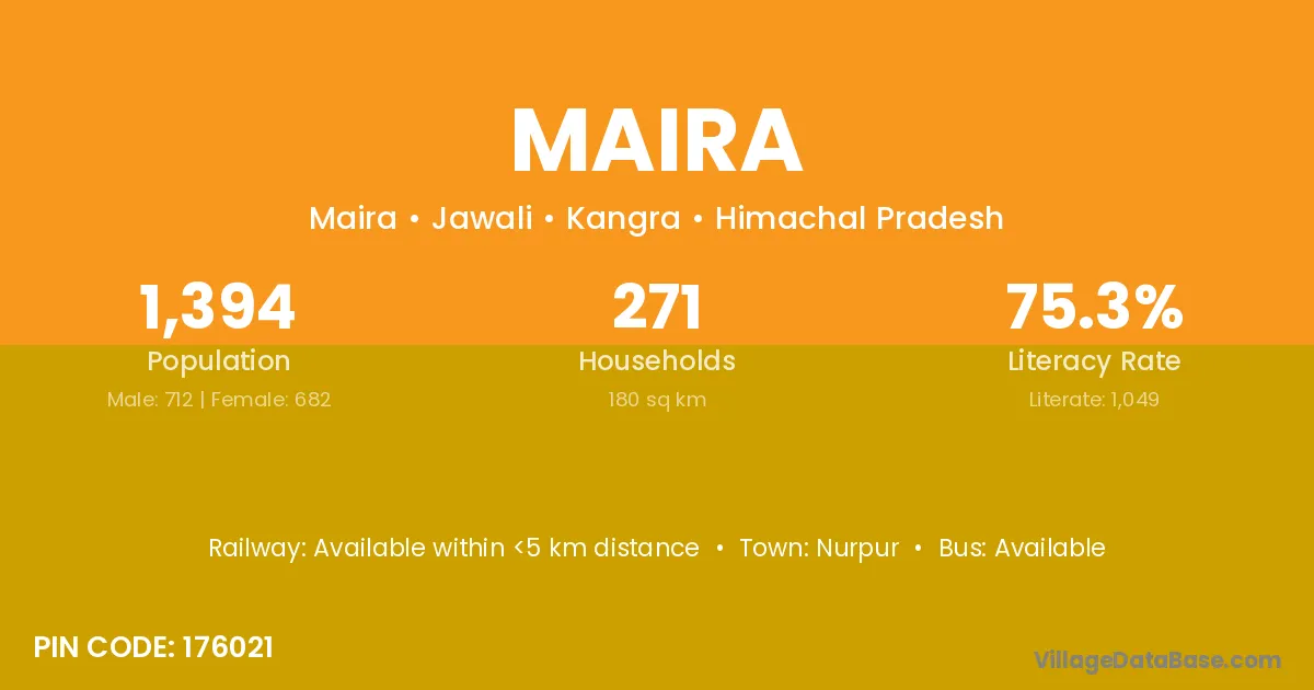 Gogari Jamalpur (15 km) is the nearest town to Maira village for major economic activities and is located approximately 15 km away.