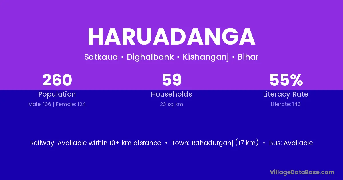 Bahadurganj (17 km) is the nearest town to Haruadanga village for major economic activities and is located approximately 17 km away.