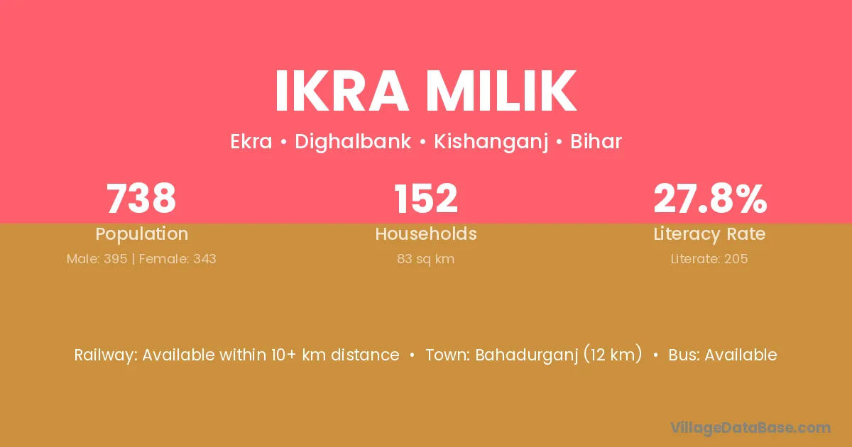 Bahadurganj (12 km) is the nearest town to Ikra Milik village for major economic activities and is located approximately 12 km away.