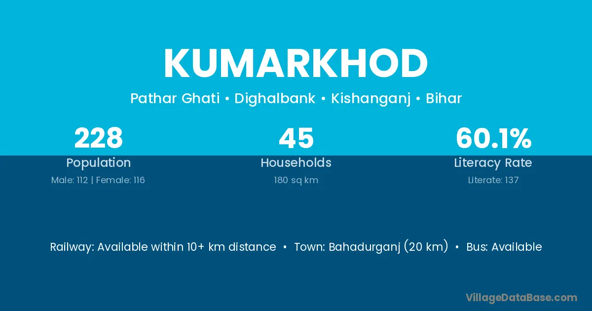 Bahadurganj (20 km) is the nearest town to Kumarkhod village for major economic activities and is located approximately 20 km away.