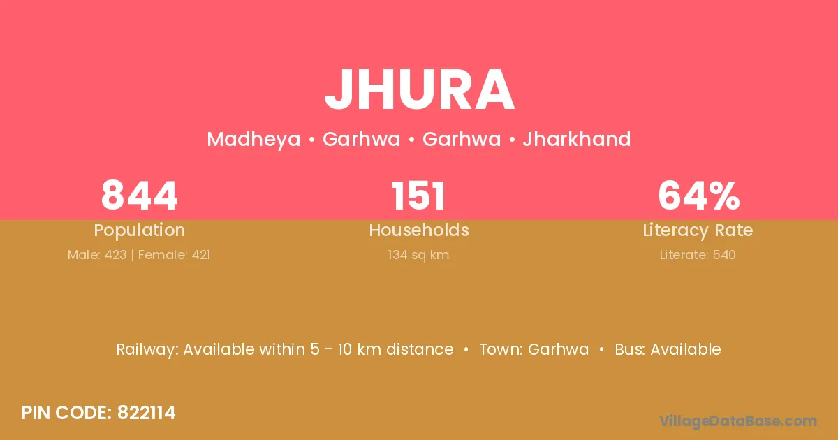 Jhura village has a total population of 249 people, of which 127 are males and 122 are females.