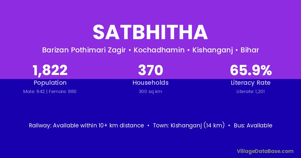 Kishanganj (14 km) is the nearest town to Satbhitha village for major economic activities and is located approximately 14 km away.