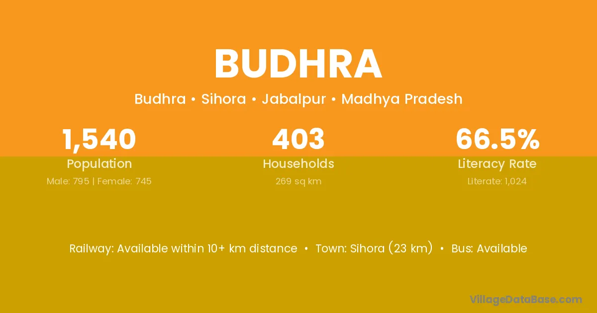 Thakurganj (20 km) is the nearest town to Budhra village for major economic activities and is located approximately 20 km away.