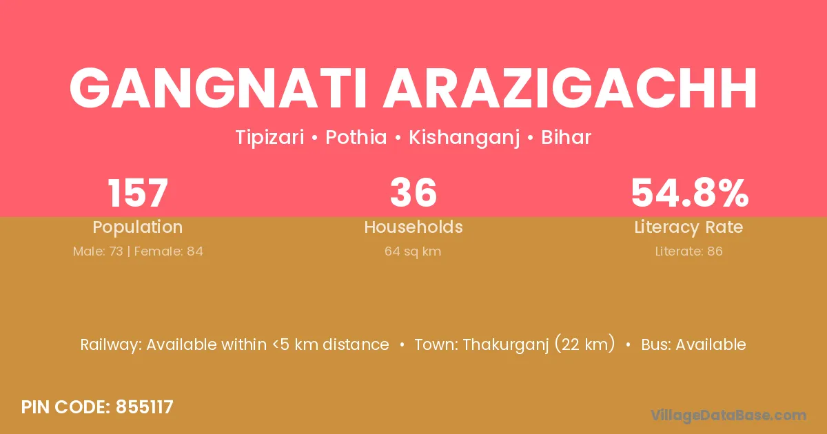 Gangnati Arazigachh village has a total population of 157 people, of which 73 are males and 84 are females.