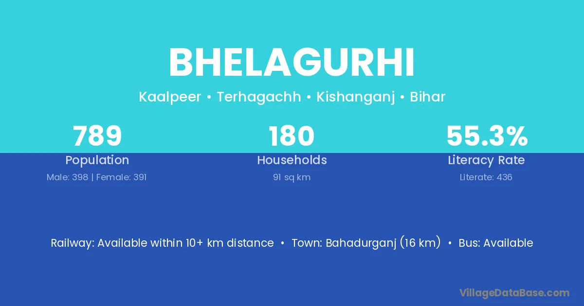 Bahadurganj (16 km) is the nearest town to Bhelagurhi village for major economic activities and is located approximately 16 km away.