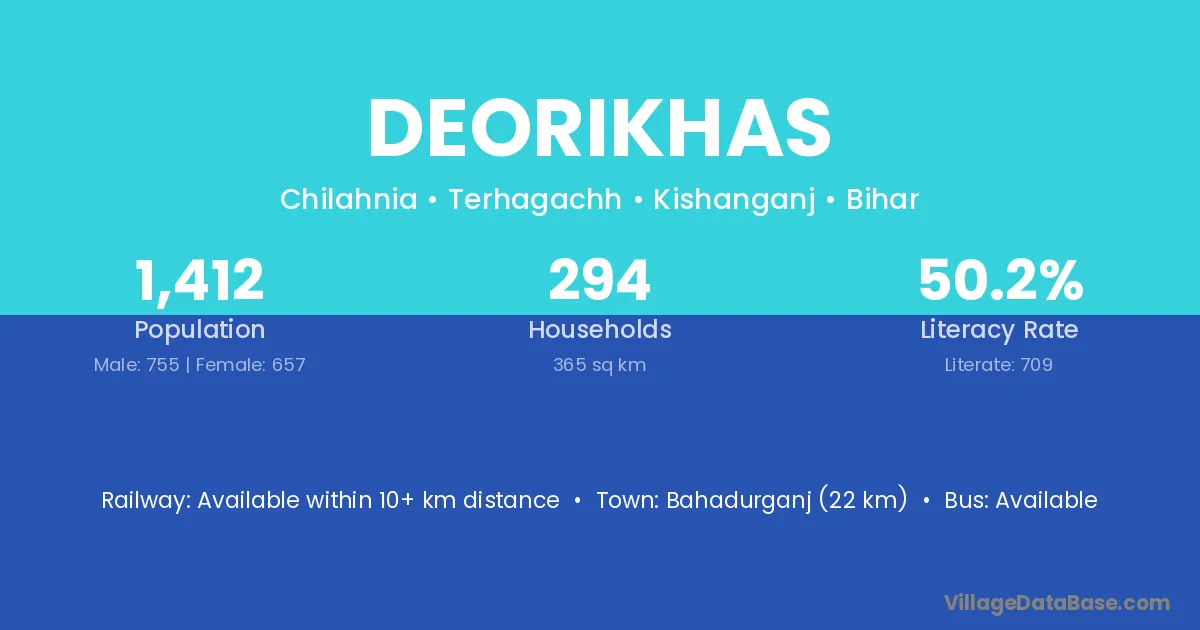 Bahadurganj (22 km) is the nearest town to Deorikhas village for major economic activities and is located approximately 22 km away.