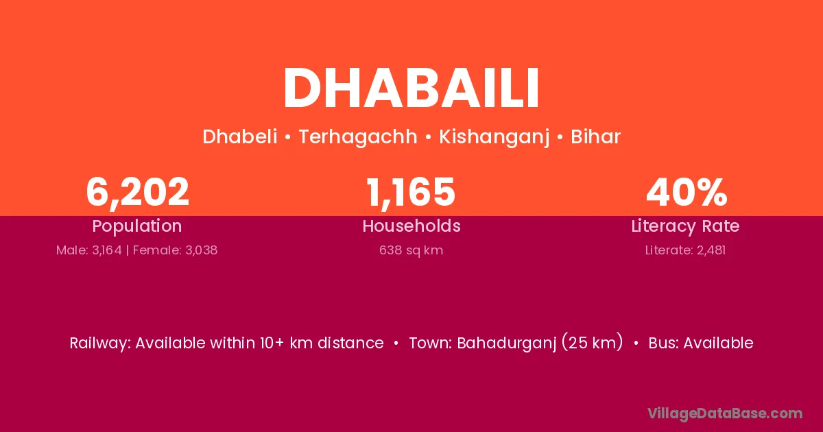 Bahadurganj (25 km) is the nearest town to Dhabaili village for major economic activities and is located approximately 25 km away.