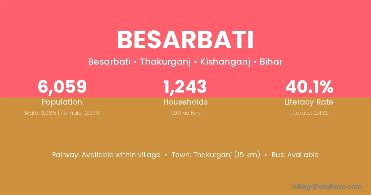 Thakurganj (15 km) is the nearest town to Besarbati village for major economic activities and is located approximately 15 km away.