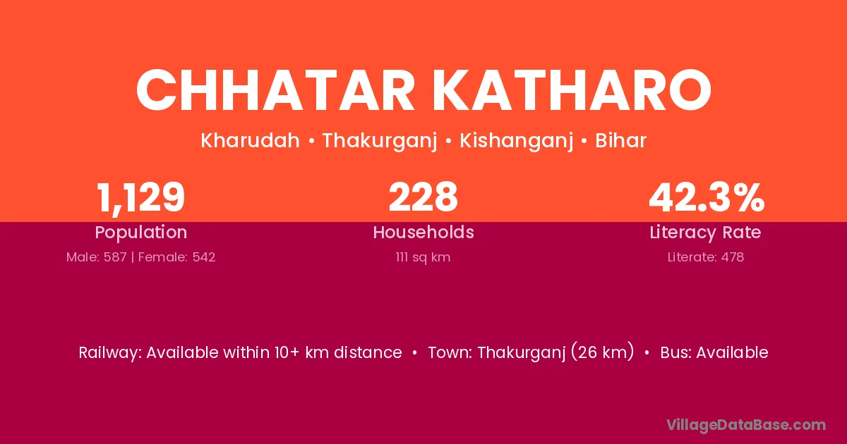 Thakurganj (26 km) is the nearest town to Chhatar Katharo village for major economic activities and is located approximately 26 km away.