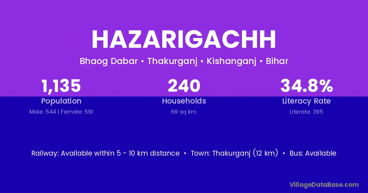 Thakurganj (12 km) is the nearest town to Hazarigachh village for major economic activities and is located approximately 12 km away.