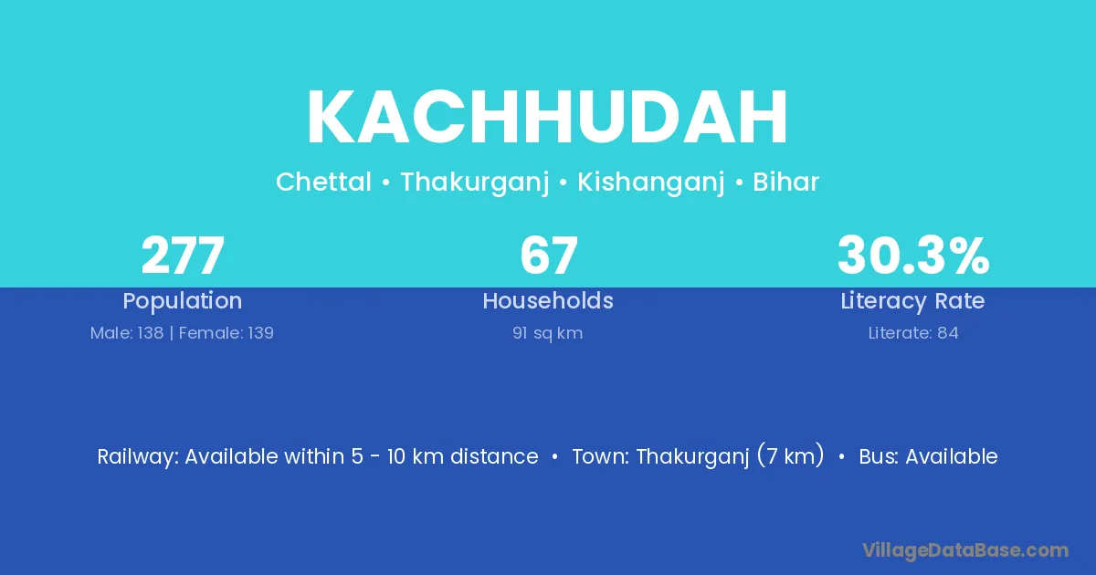 Thakurganj (7 km) is the nearest town to Kachhudah village for major economic activities and is located approximately 7 km away.