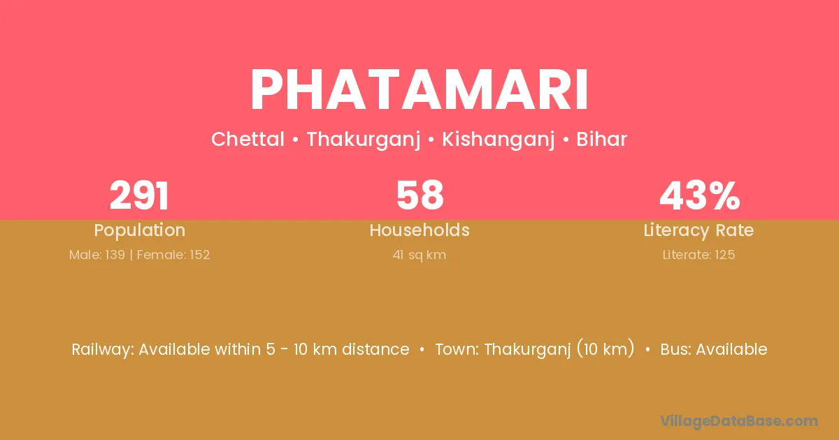 Thakurganj (10 km) is the nearest town to Phatamari village for major economic activities and is located approximately 10 km away.