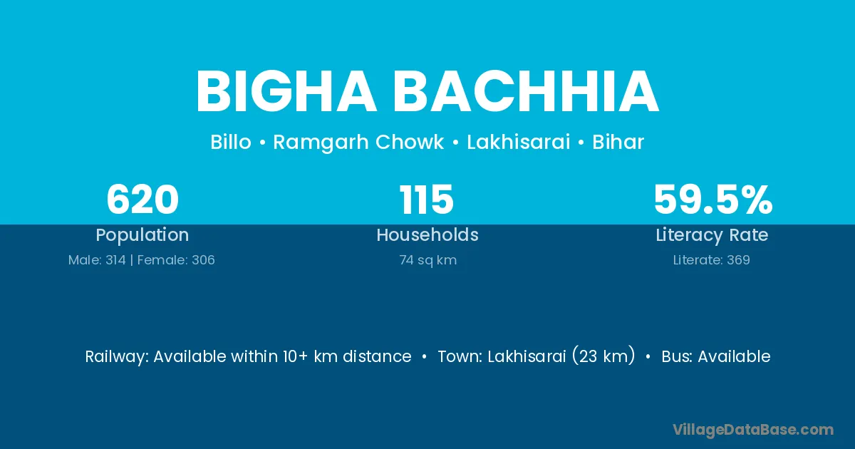 Lakhisarai (23 km) is the nearest town to Bigha Bachhia village for major economic activities and is located approximately 23 km away.