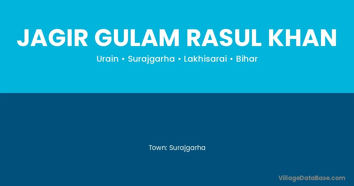 Jagir Gulam Rasul Khan village is located in the Surajgarha Subdivision of the Lakhisarai district in Bihar .