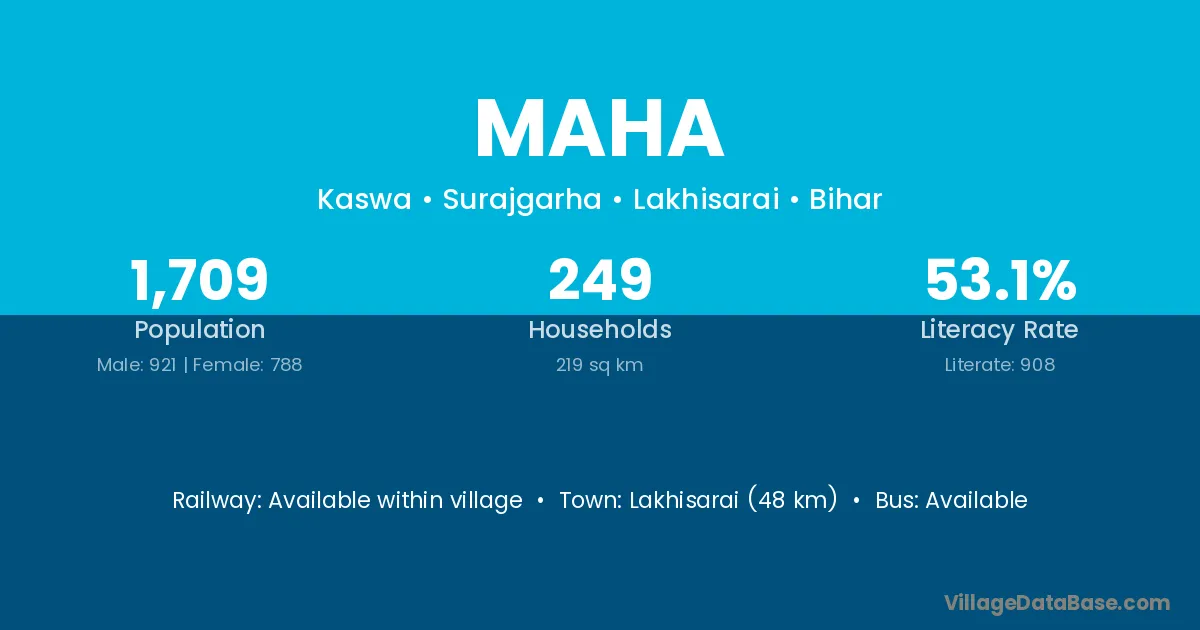 Lakhisarai (48 km) is the nearest town to Maha village for major economic activities and is located approximately 48 km away.
