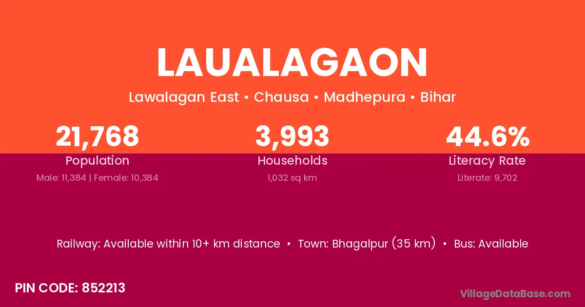 Bhagalpur (35 km) is the nearest town to Laualagaon village for major economic activities and is located approximately 35 km away.