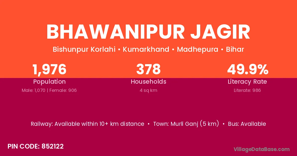 Murli Ganj (5 km) is the nearest town to Bhawanipur Jagir village for major economic activities and is located approximately 5 km away.