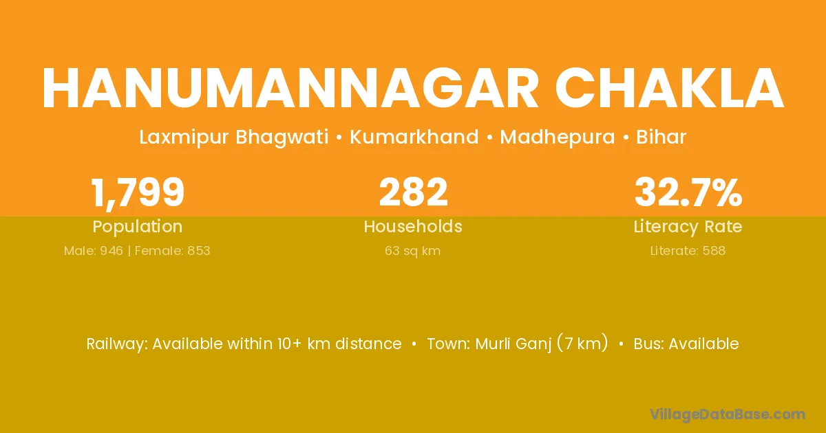 Murli Ganj (7 km) is the nearest town to Hanumannagar Chakla village for major economic activities and is located approximately 7 km away.