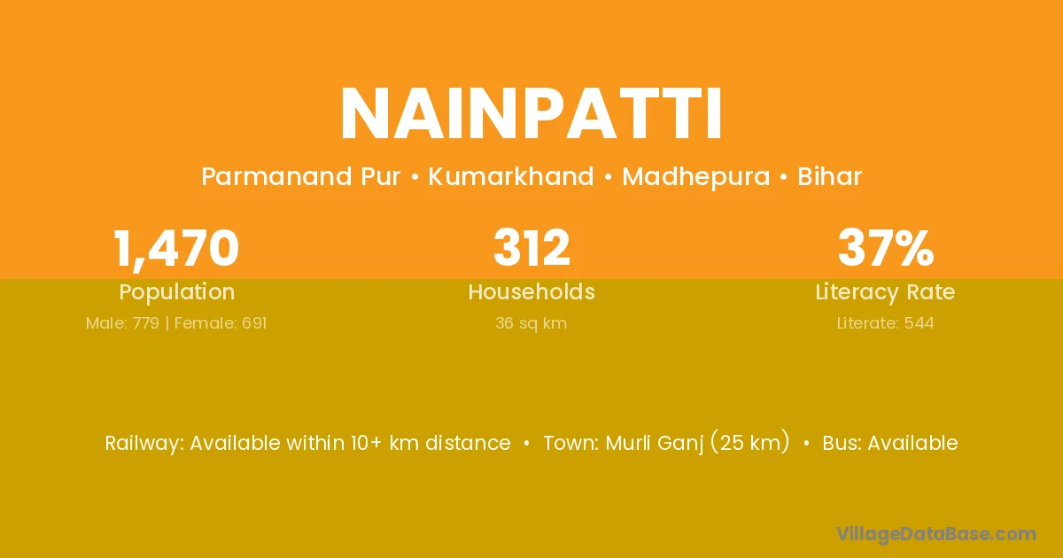 Murli Ganj (25 km) is the nearest town to Nainpatti village for major economic activities and is located approximately 25 km away.