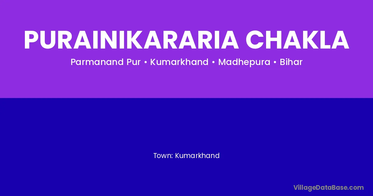 Kumarkhand is the nearest town to Purainikararia Chakla village for major economic activities