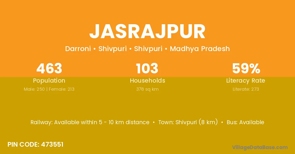 Madhubani (37 km) is the nearest town to Jasrajpur village for major economic activities and is located approximately 37 km away.