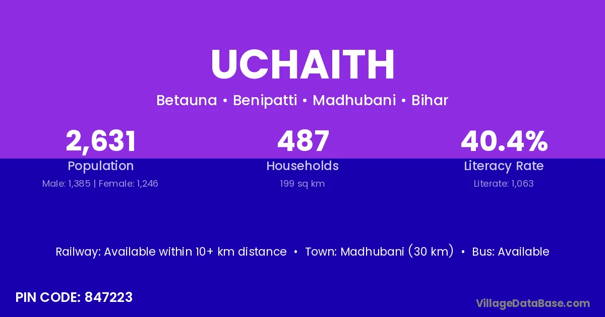Madhubani (30 km) is the nearest town to Uchaith village for major economic activities and is located approximately 30 km away.