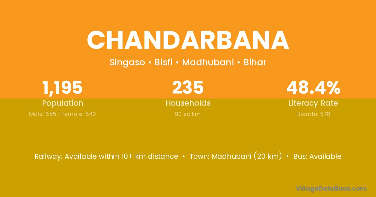 Madhubani (20 km) is the nearest town to Chandarbana village for major economic activities and is located approximately 20 km away.