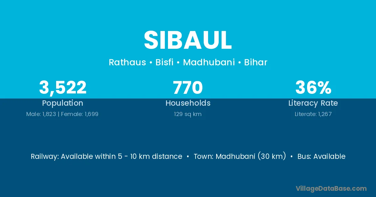 Madhubani (30 km) is the nearest town to Sibaul village for major economic activities and is located approximately 30 km away.