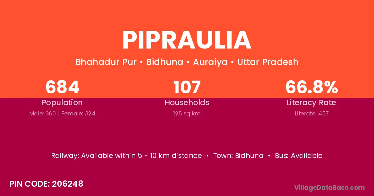 There are approximately 286 households in Pipraulia village.