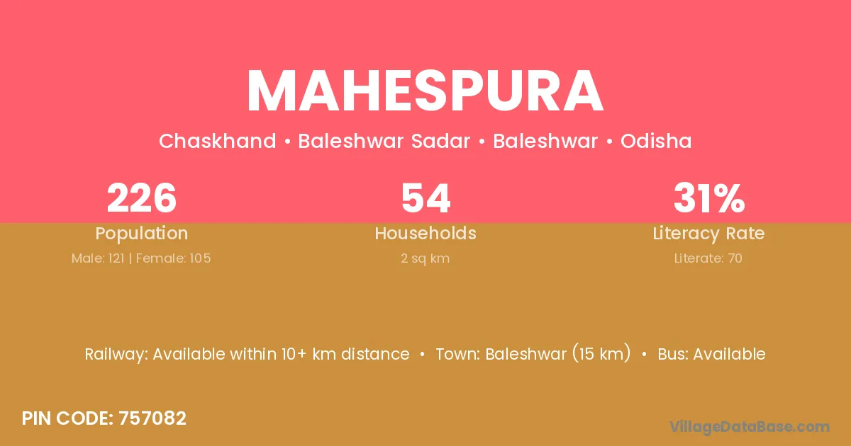 Jhanjharpur (12 km) is the nearest town to Mahespura village for major economic activities and is located approximately 12 km away.