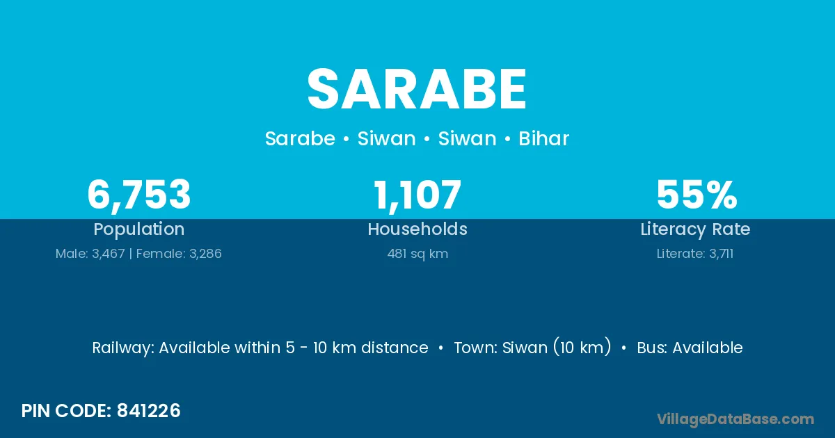 Jainagar (10 km) is the nearest town to Sarabe village for major economic activities and is located approximately 10 km away.
