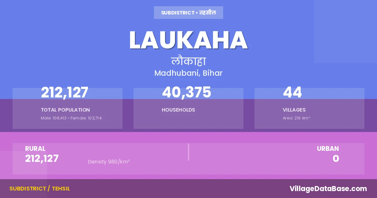 Laukaha is a town and Subdivision in the Madhubani district of the Bihar. In India, a Subdivision is a subdivision of a district responsible for the administration and revenue collection of a specific area within the district. Subdivisions play a crucial role in the local governance structure, contributing significantly to the development and administration of their communities.