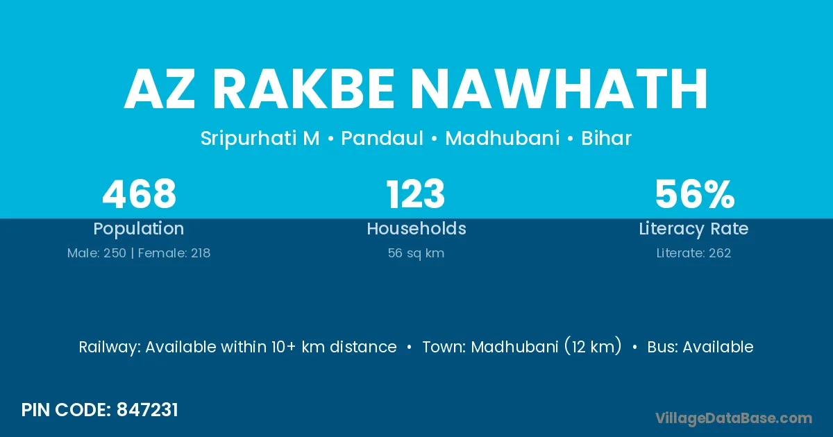 Madhubani (12 km) is the nearest town to Az Rakbe Nawhath village for major economic activities and is located approximately 12 km away.