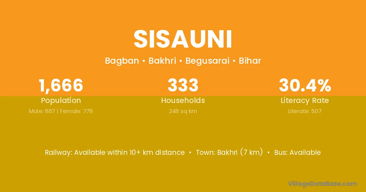 Ghoghardiha (27 km) is the nearest town to Sisauni village for major economic activities and is located approximately 27 km away.