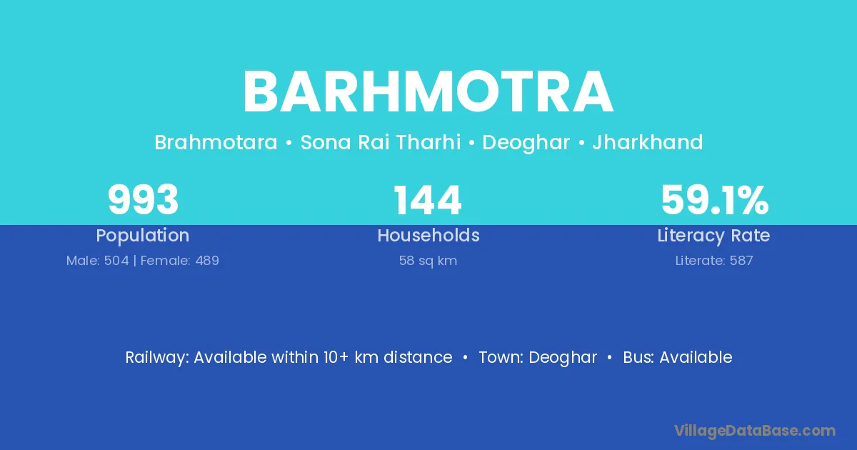 Madhubani (9 km) is the nearest town to Barhmotra village for major economic activities and is located approximately 9 km away.