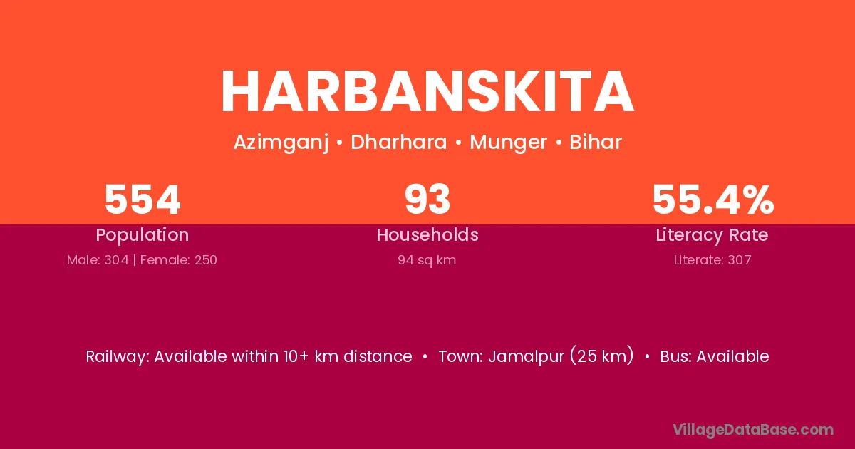 Jamalpur (25 km) is the nearest town to Harbanskita village for major economic activities and is located approximately 25 km away.