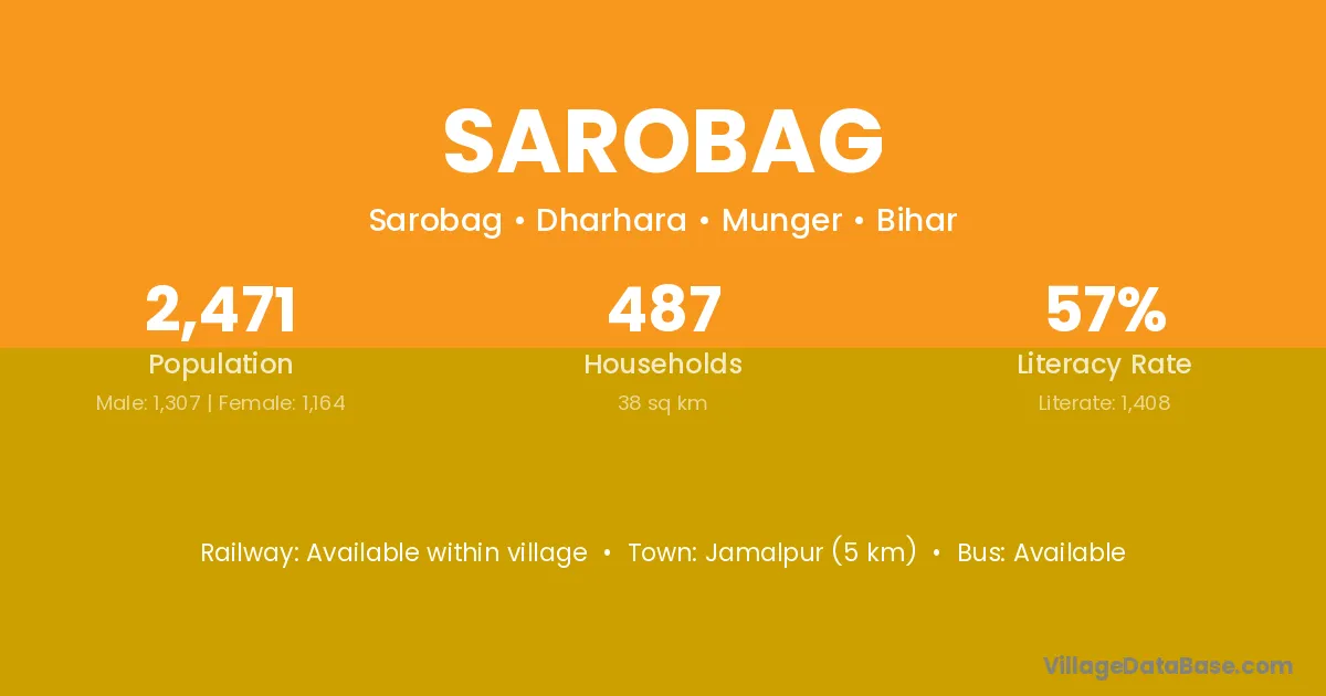 Sarobag village has a total population of 2,471 people, of which 1,307 are males and 1,164 are females.