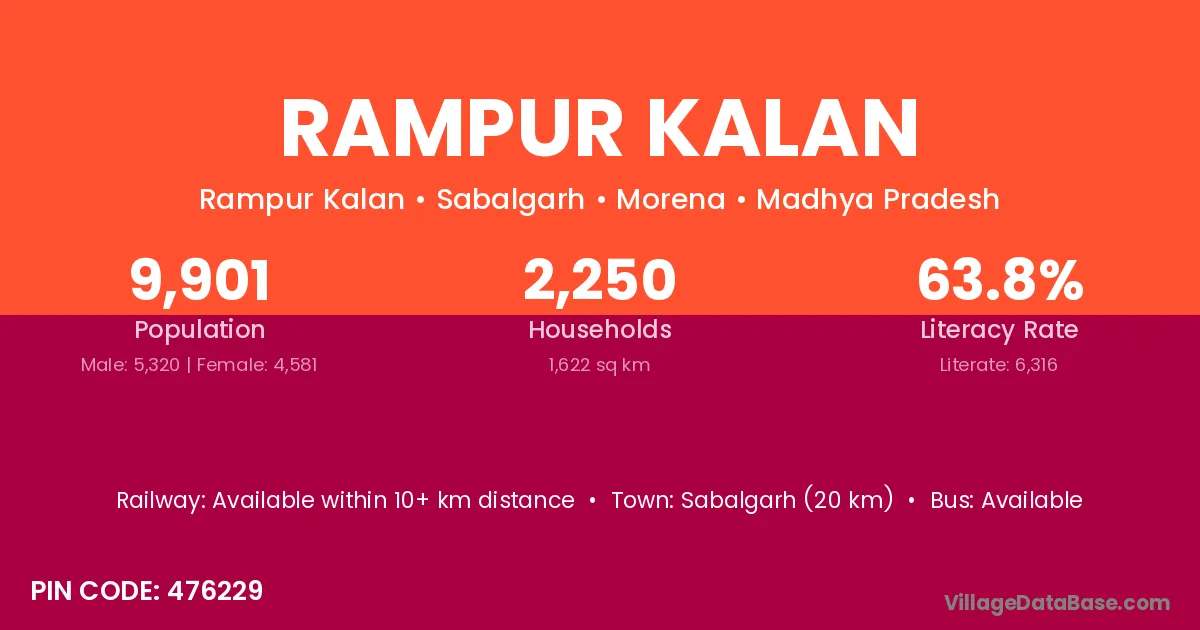 Rampur Kalan village has a total population of 7,463 people, of which 4,091 are males and 3,372 are females.