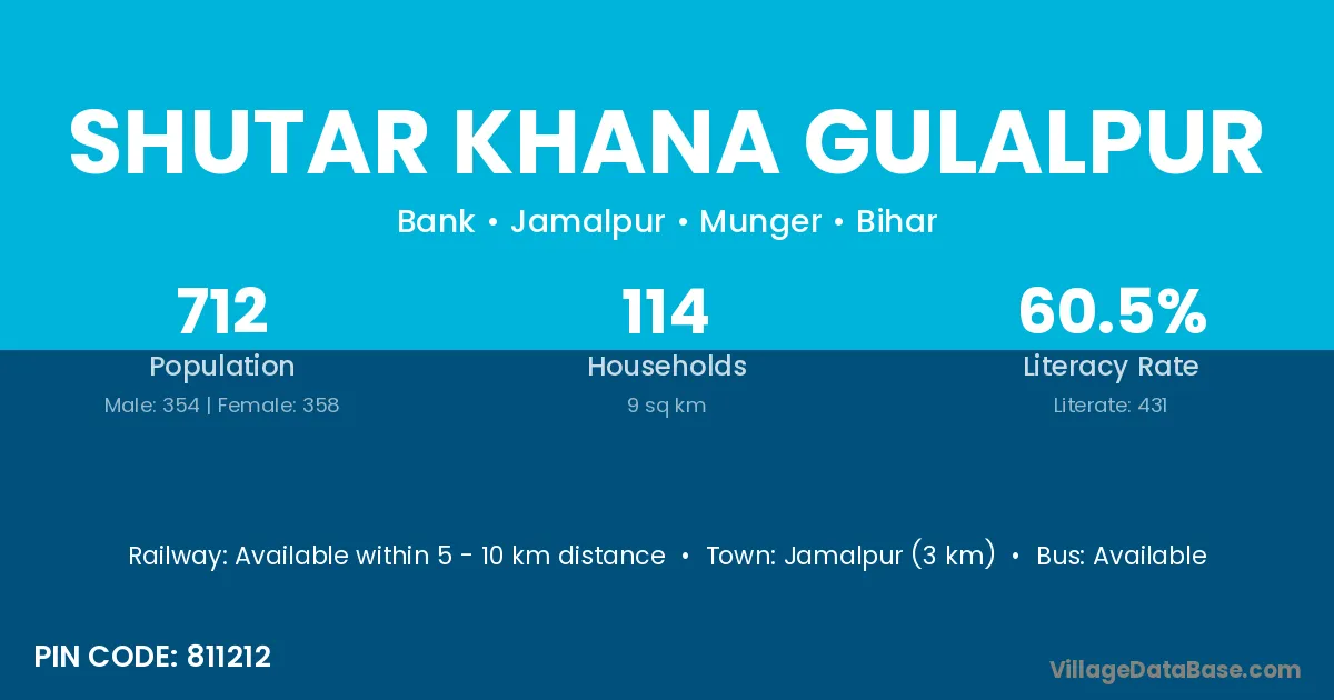 Shutar Khana Gulalpur village has a total population of 712 people, of which 354 are males and 358 are females.