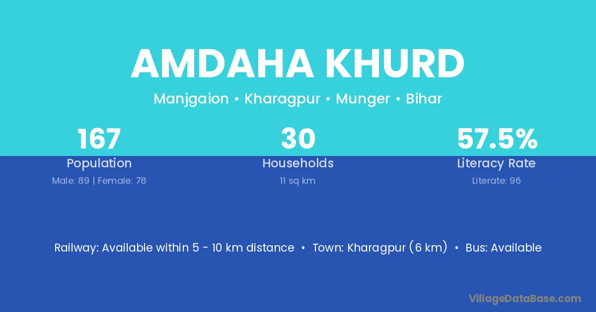 Amdaha Khurd village has a total population of 167 people, of which 89 are males and 78 are females.