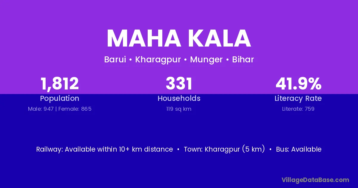 Kharagpur (5 km) is the nearest town to Maha Kala village for major economic activities and is located approximately 5 km away.