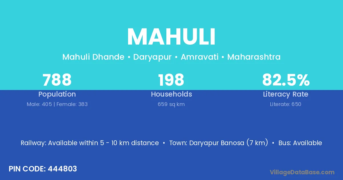 Mahuli village has a total population of 1,840 people, of which 979 are males and 861 are females.