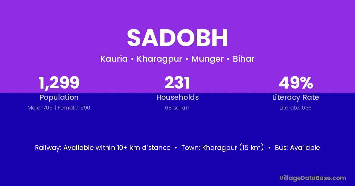 Kharagpur (15 km) is the nearest town to Sadobh village for major economic activities and is located approximately 15 km away.